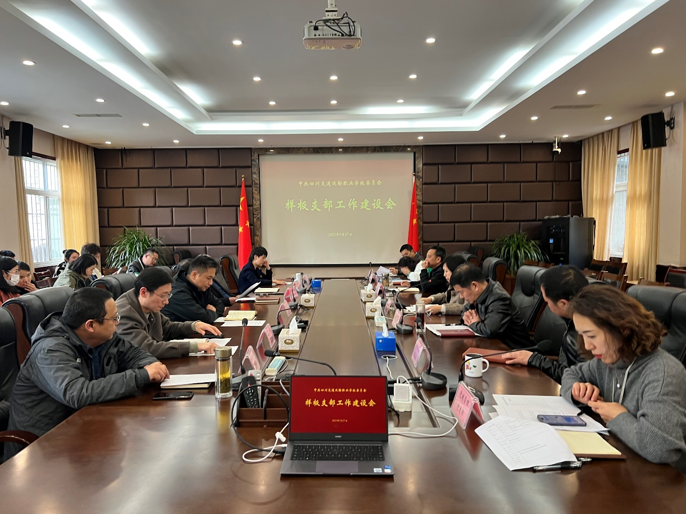 为深入学习贯彻习近平新时代中国特色社会主义思想和党的二十大精神,促进学校基层党组织建设全面进步, 3月27日下午开展样板党支部工作建设会,全校12个在职党支部支委参加会议。